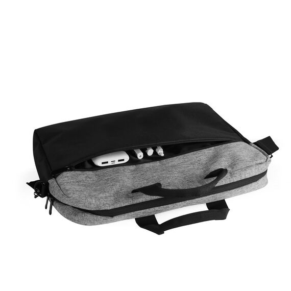 Сумка для ноутбука 15,6". Основне відділення, відділення для ноутбука з м'яким ущільнювачем, одна внутрішня кишеня на блискавці та одна зовнішня кишеня на блискавці та з іншого боку ремінь-тримач для транспортування на валізі. Матеріал: поліестер під імітацію джута.
